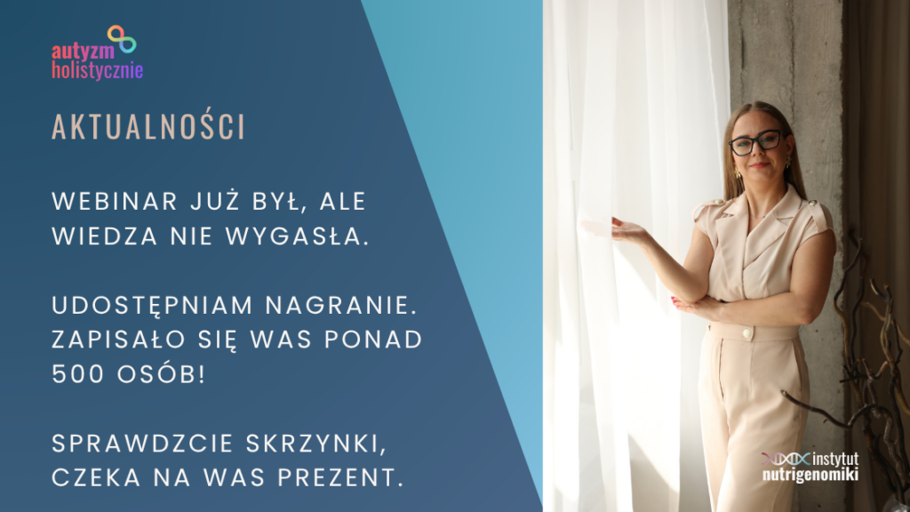 Już we wrześniu odbędzie się kolejne 5-dniowe całkowicie bezpłatne wydarzenie „AUTYZM, ADHD, HNB – opracuj Skuteczną Strategię Zdrowotną„, na które bardzo serdecznie Cię zapraszam, szczególnie jeśli chciałabyś wiedzieć, jak zrealizować diagnostykę i zbudować na niej efektywny plan terapeutyczny, który stabilizuje stan zdrowia, pomaga zapanować nad chaosem i daje Tobie więcej spokoju i poczucia bezpieczeństwa.