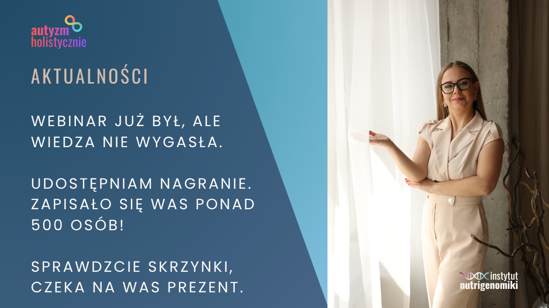 Drodzy uczestnicy – sprawdźcie swoje skrzynki mailowe! W podziękowaniu za tak liczne uczestnictwo wysłałam Wam dostęp do nagrań ze szkolenia „Dni świadomości autyzmu”. To 4 godziny merytorycznej wiedzy, która pomaga zrozumieć biomedyczne przyczyny zaburzeń – od genetyki po czynniki środowiskowe. Korzystajcie i bierzcie sprawy w swoje ręce.
