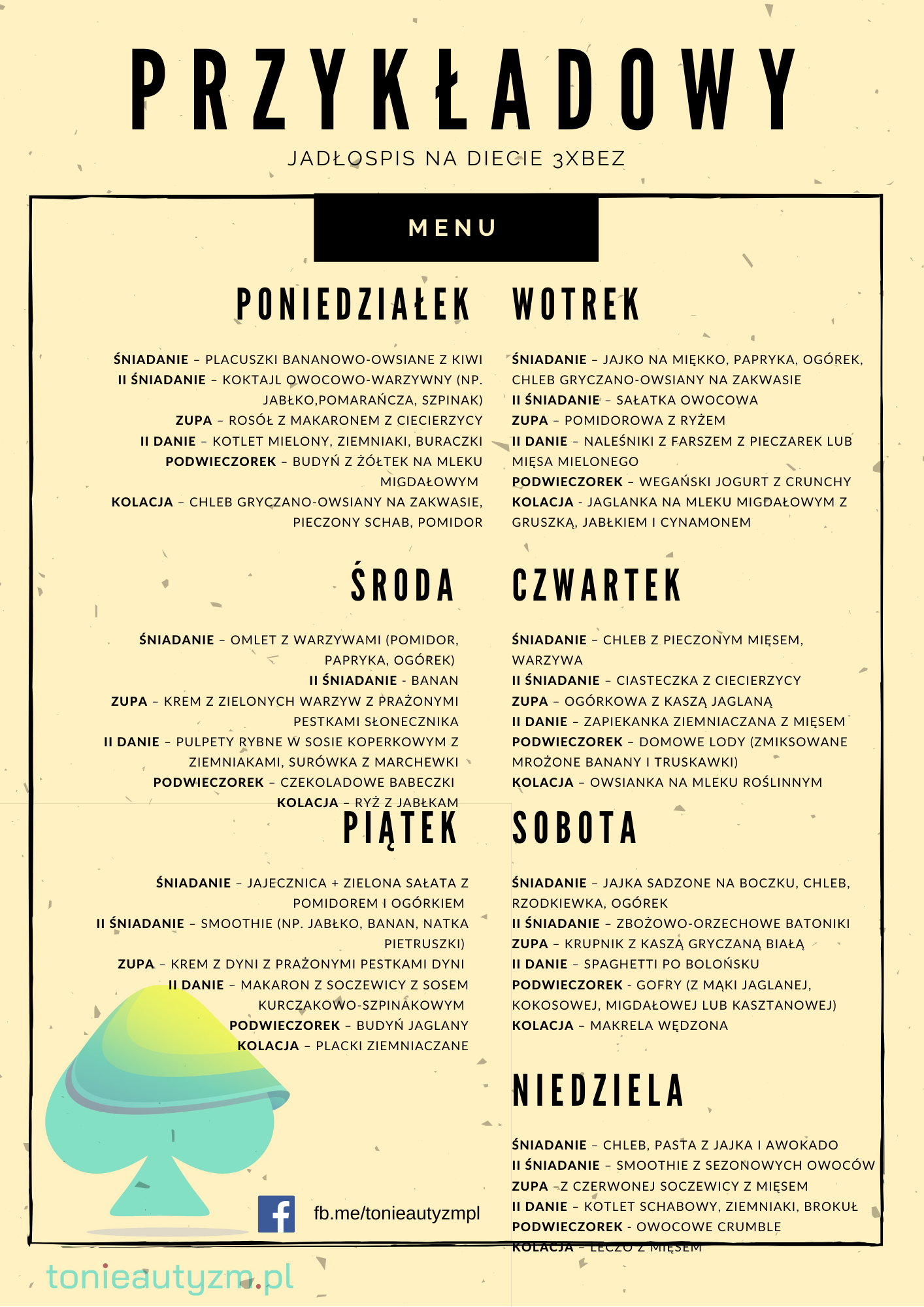 - Przykładowy tygodniowy jadłospis w diecie 3xbez: